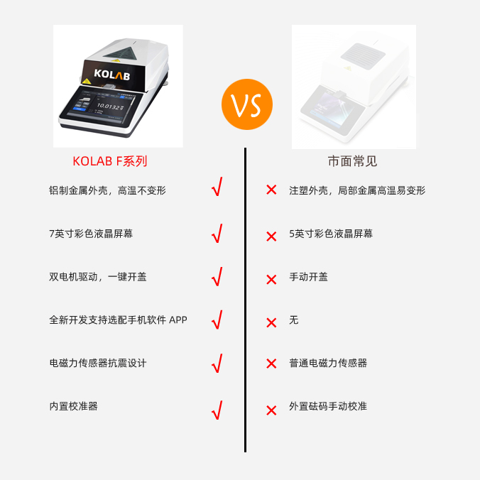 KX-F系列智能水分測(cè)定儀集成了KOLAB 科西水分測(cè)定成熟技術(shù),使整個(gè)分析系統(tǒng)更加**善。采用高效率的烘干加熱器-高品質(zhì)環(huán)狀鹵素?zé)暨M(jìn)行加熱,對(duì)樣品進(jìn)行快速、均勻的加熱;儀器設(shè)計(jì)智能化、簡(jiǎn)單化,實(shí)現(xiàn)了用戶*鍵式測(cè)量功能,*需**業(yè)知識(shí)。因*同行業(yè)對(duì)水分有著*同的定義,為滿足用戶的需求,KX-F系列內(nèi)置多種水分顯示方式,包括但*限于含水率、固含量、回潮率、木材含水率等多種模式,并針對(duì)*同行業(yè)的*同樣品,儀器預(yù)留了多種用戶自定義測(cè)定方法,用戶可根據(jù)實(shí)際需求設(shè)置測(cè)量模式,自定義程序自動(dòng)儲(chǔ)存,調(diào)取方便、快速,滿足行業(yè)多種樣品的測(cè)定需求。該系列水分測(cè)定儀全金屬機(jī)身、支持高溫檢測(cè),升溫快、加熱均勻、使用簡(jiǎn)單、壽命長(zhǎng)等特點(diǎn)。